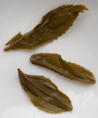 already shows this is not an ordinary green tea. In fact, it is midway into a slightly oxidised oolong. While surely closer to the Chinese style of tea than Japanese, it lacks the fresh green vegetal notes of most green teas. Instead, it is fairly grainy and distinctively nutty (a primary characteristic of Korean teas), yielding a medium-bodied infusion with good power and patience. It is relatively tolerant to high temperature, and yields four good infusions. The wet leaf is healthy and consistent, showing that even this relatively modest third flush is of very good quality.