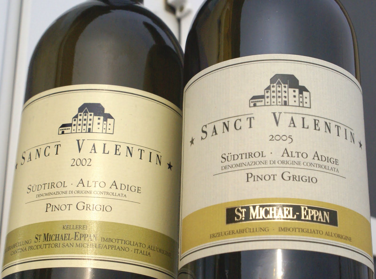With this week’s rzepa, I’ve opened two vintages of the Pinot Grigio St. Valentin from the San Michele Appiano co-op in Alto Adige. The 2002 is (very) slowly maturing, and has surprising power left. Only slightly aged in the bouquet (honey and dried herbs), it shows that typical rich, creamy texture of Pinot Gris while staying quite dry. The acidity is low, and there’s an obvious contribution of new oak but it’s the strong mineral backbone that lends this wine a lovely sense of balance. It’s drinking very well now, but with turnip I’ve actually preferred the 2005 version of the same wine. The structure is similar – good body, moderate oak, lowish acidity – but the minerality is more upfront, and there is a juiciness that’s gone in the older version. Both vintages are quite similar though – consistency is this overperforming co-op’s big asset. Great food wines.