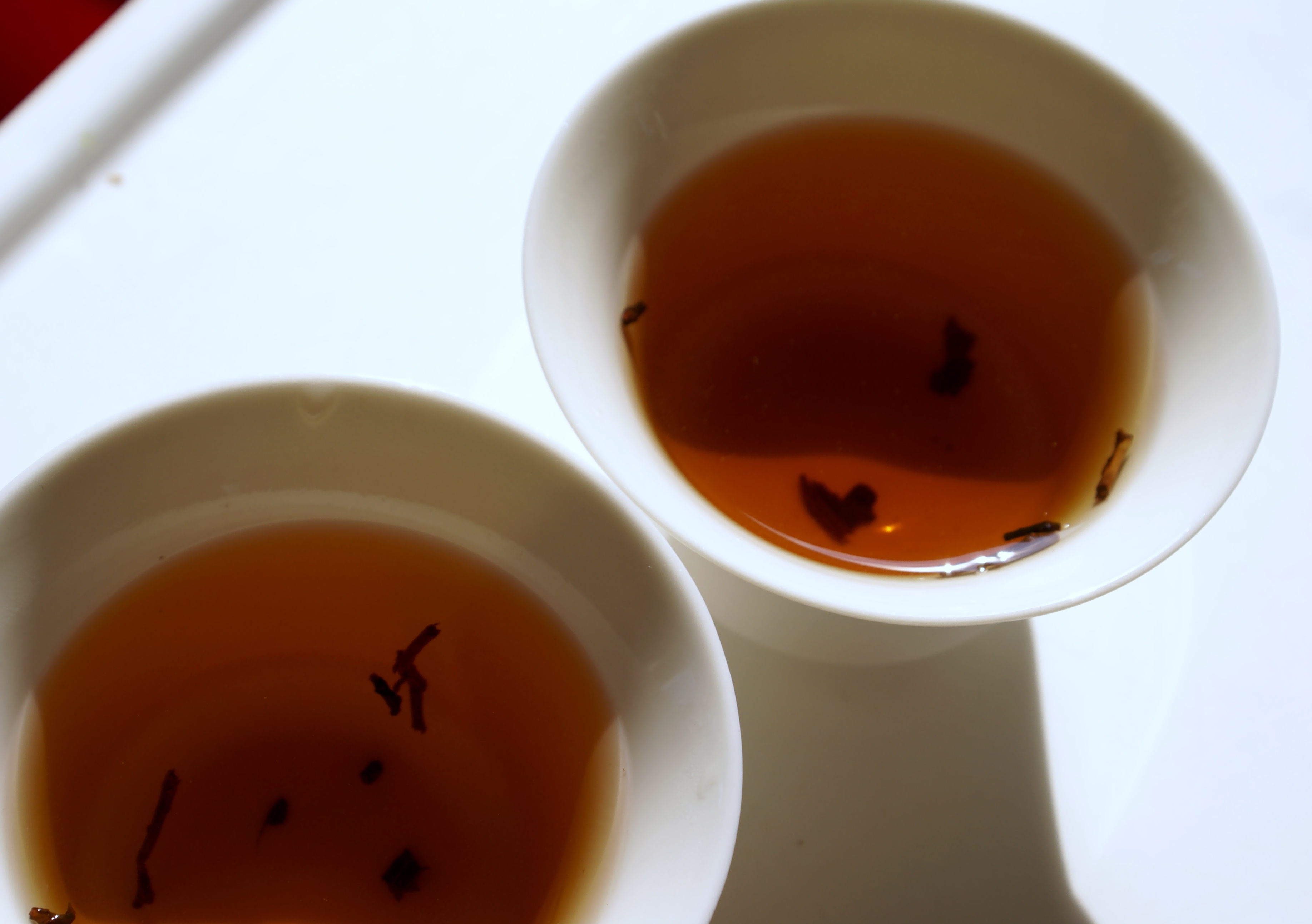 Orange Pekoe (left) and Broken Leaf in competition brewing: light colours.