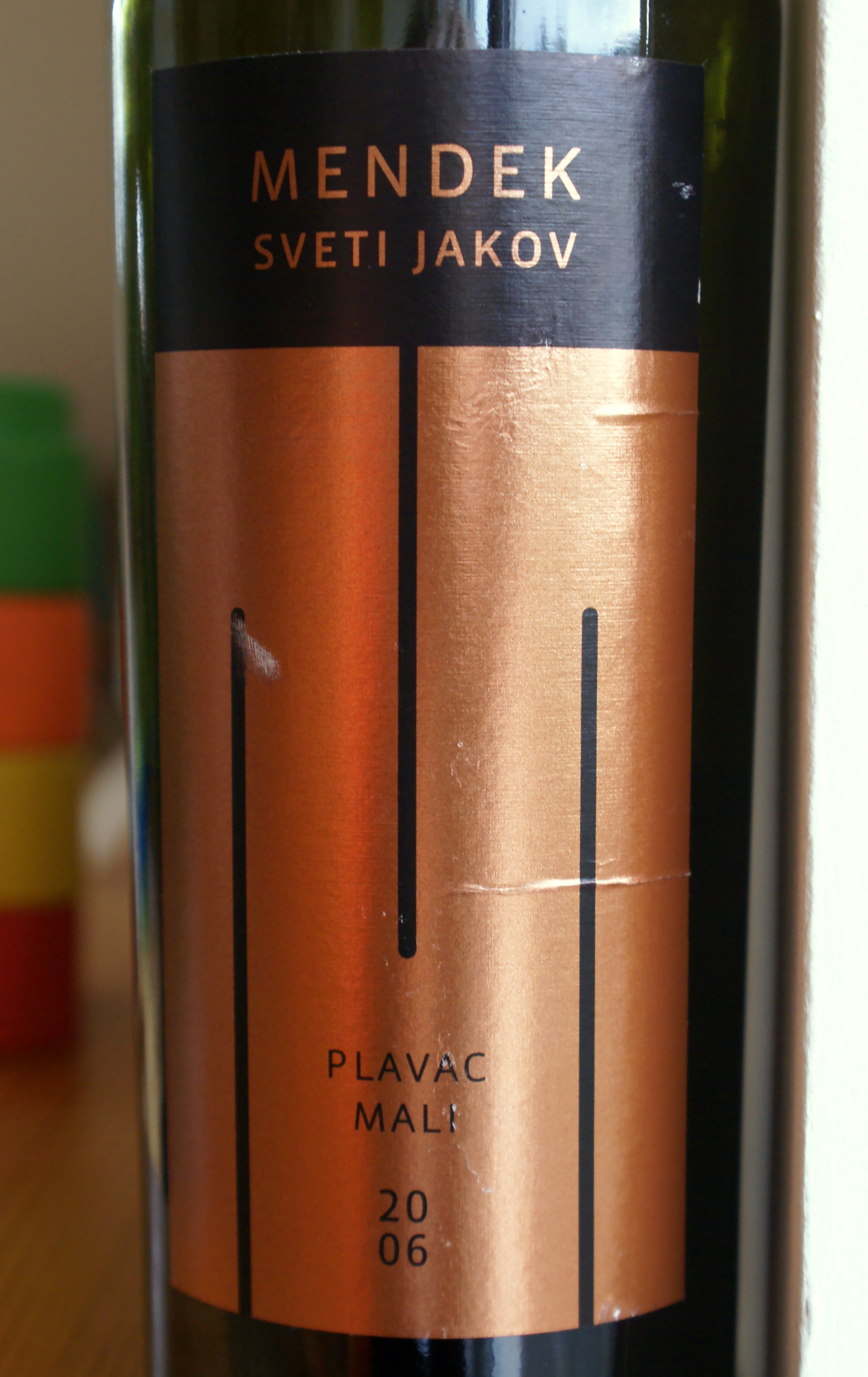I’ve picked this 2006 Sv. Jakov Plavac Mali from Mendek in a wine shop in Poreč last April. Price was around 13€. Mendek is a brand belonging to a large import company; there is also some Istrian Malvazija made here as well as some more expensive Plavacs including the 15€ Mozaik and 35€ Selekcija. Tuscany’s Roberto Cipresso is the consultant winemaker.