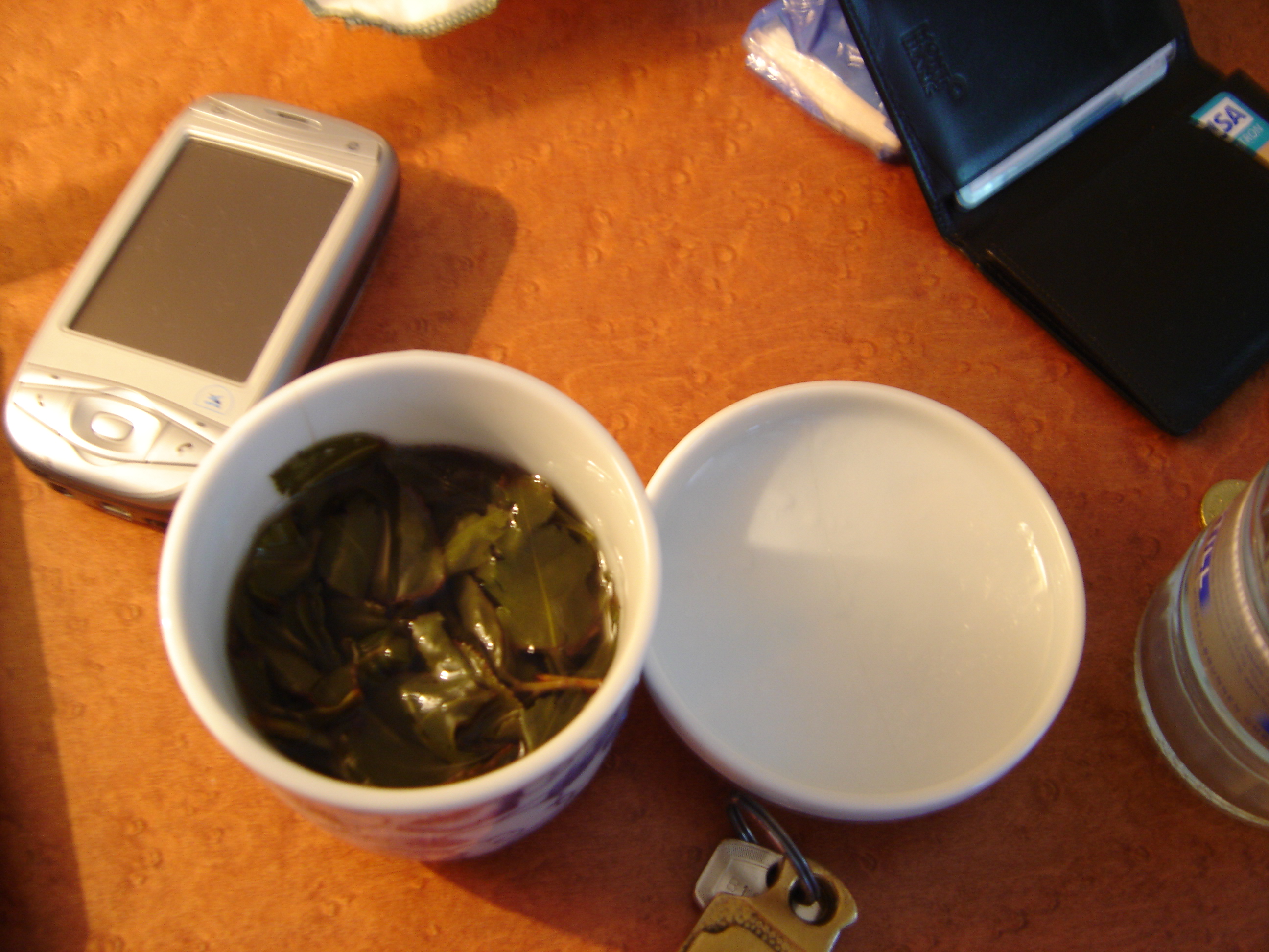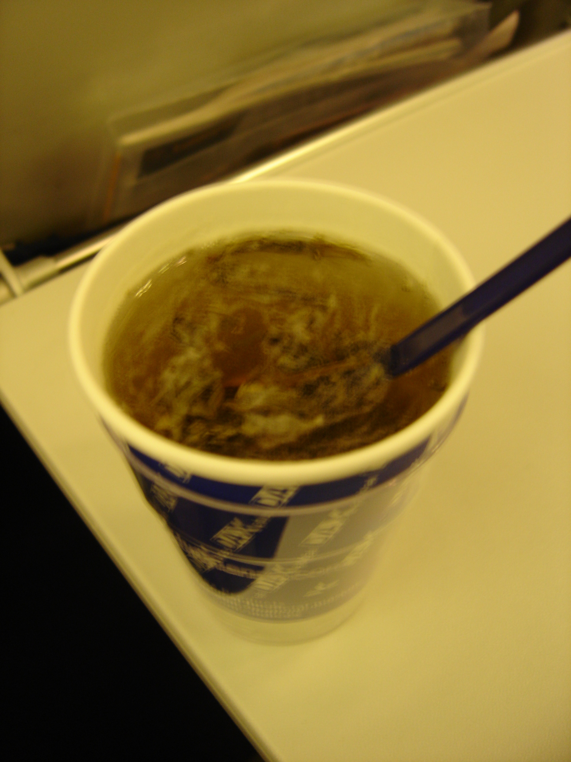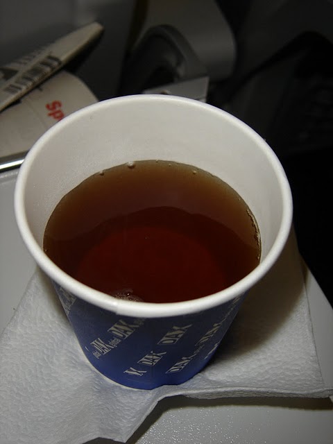 The aroma was not all that bad, vaguely recalling some real-life teas such as shu [‘ripened’] puer in its mulchy, smokey, earthy edginess, but the mouthfeel was a total disaster. It tasted like a blend of shu and black tea, with a strong note of floating cadaver. (I later found out this tea-like product is supplied by Eilles and brewed on board in large plastic containers).