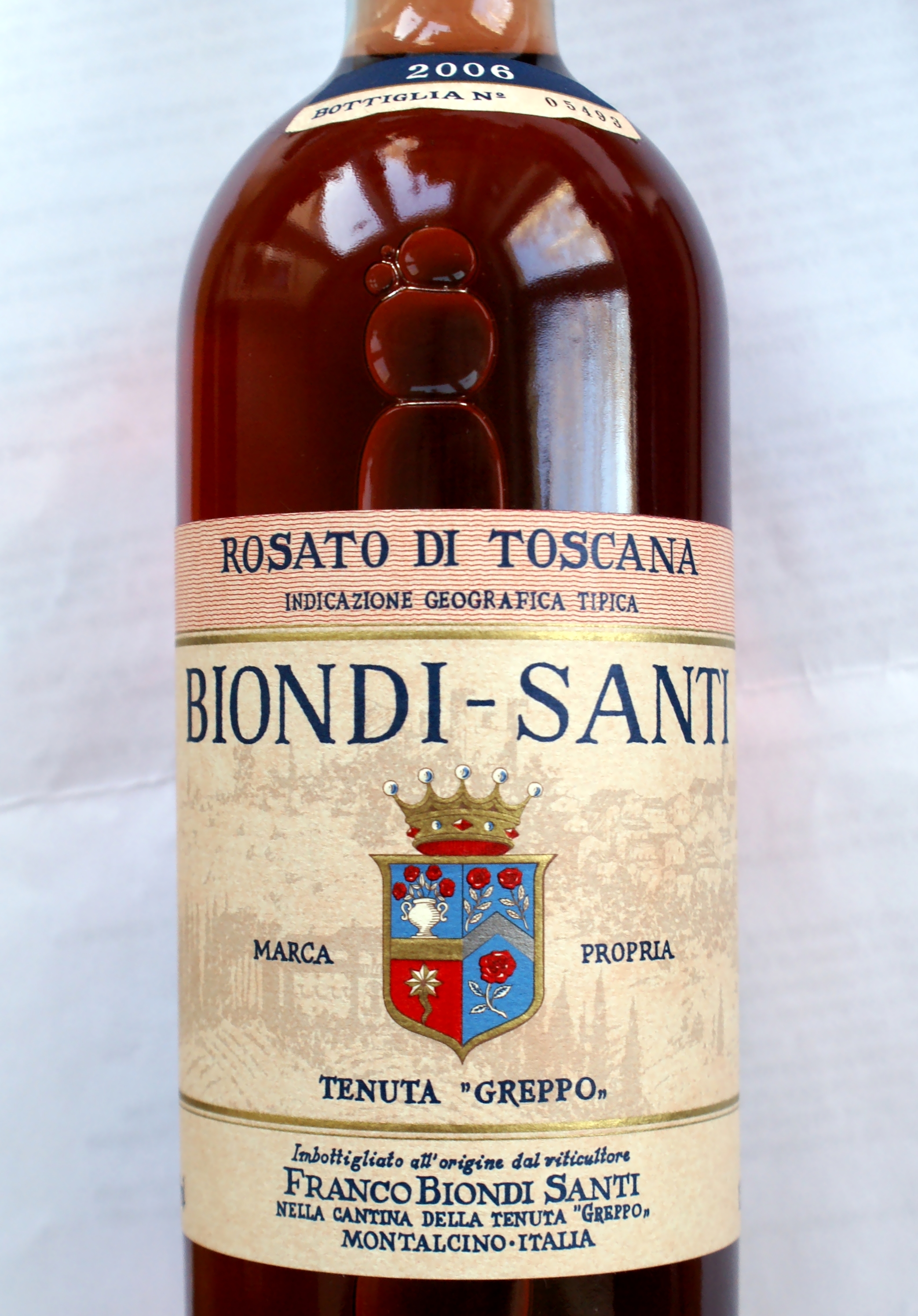 The clean deep pink of Il Poggione’s 2009 (left) and the almost reddish seriousness of Biondi-Santi’s 2006 (right).