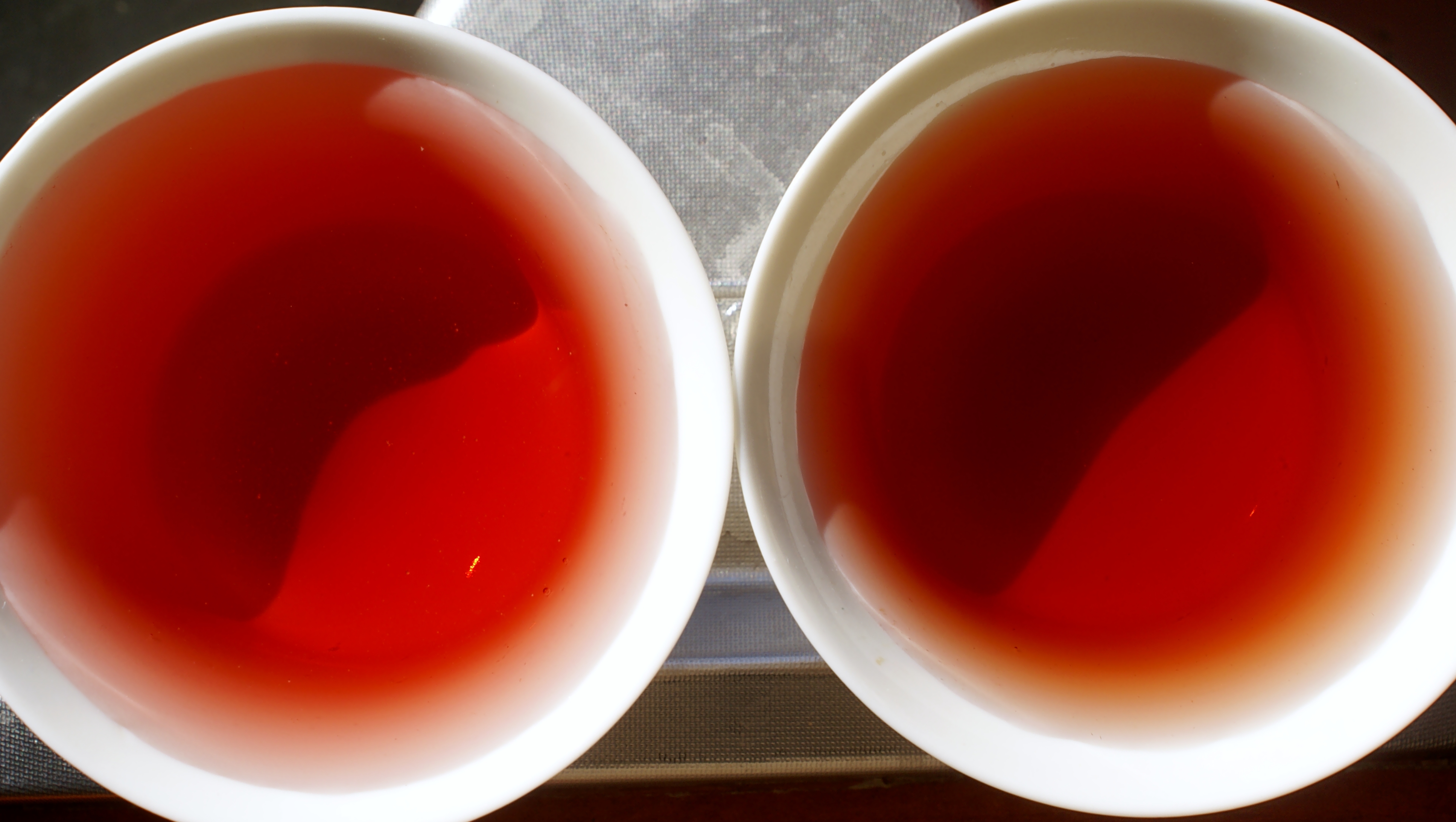 Another interesting thing about these Montalcino rosés is that they appear to age very well. Il Poggione’s 2009 is fresh as a daisy at a moment when most rosé bottlings should quickly be moving to the 2010 vintage. The Biondi-Santi at four years is showing no sign of tiredness. I’ve taken the following two photos pouring the wines into neutral white tea cups so that you can observe the colours: