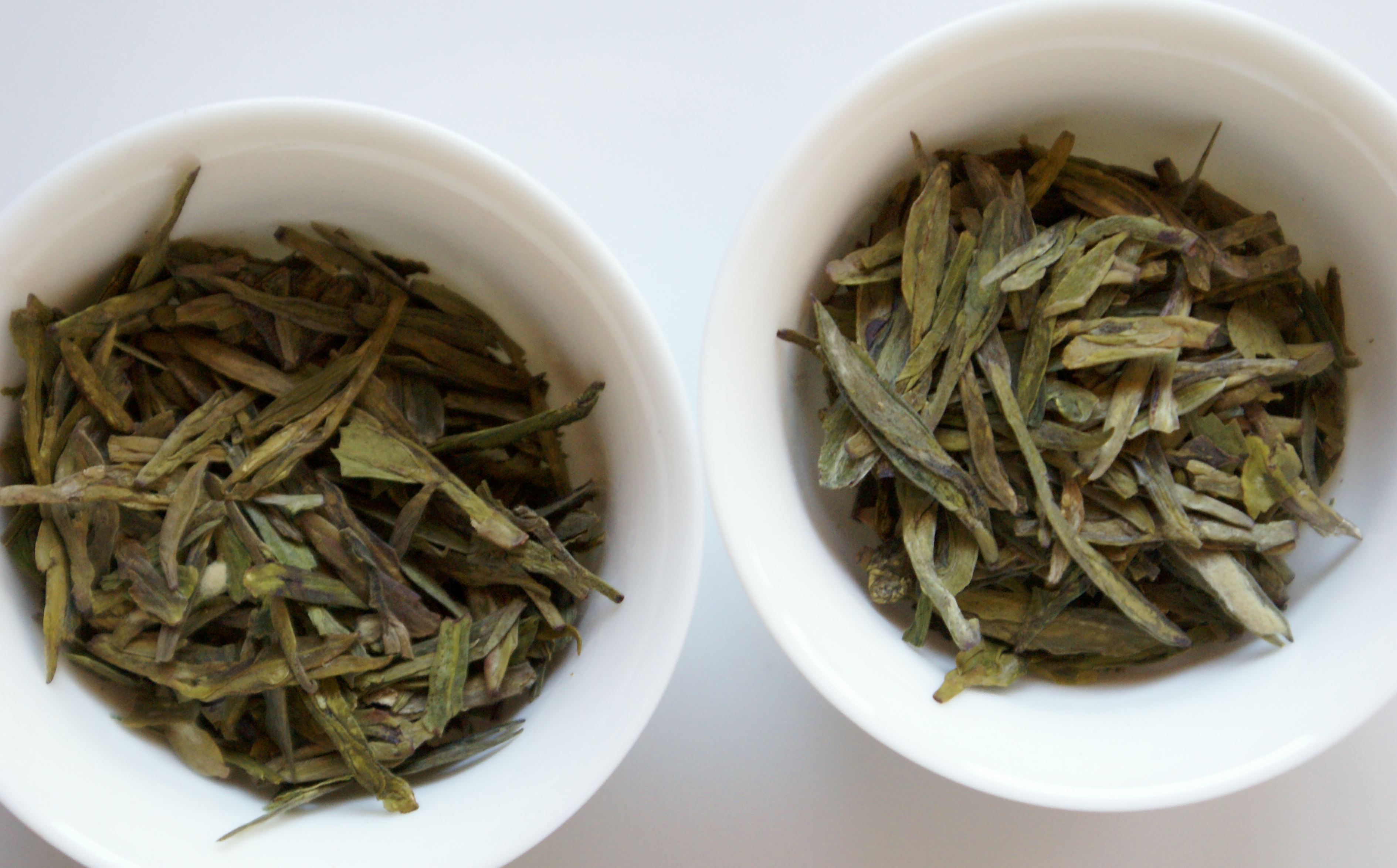 I have no idea whether any extraordinary events of meteorology or entomology or perhaps human psychology separated Thursday 8th from Friday 9th April in Zhejiang, but the truth is in the cup. The leaves of both batches are quite lovely: a pastel light emerald green and well-handled. I’d lie if I said they look any different one from another, and the very minor difference in smell might well be the power of suggestion: 8th Apr shows very elegant roast with a freshly baked bread character while 9th Apr seems a bit more herby and hay-like.
