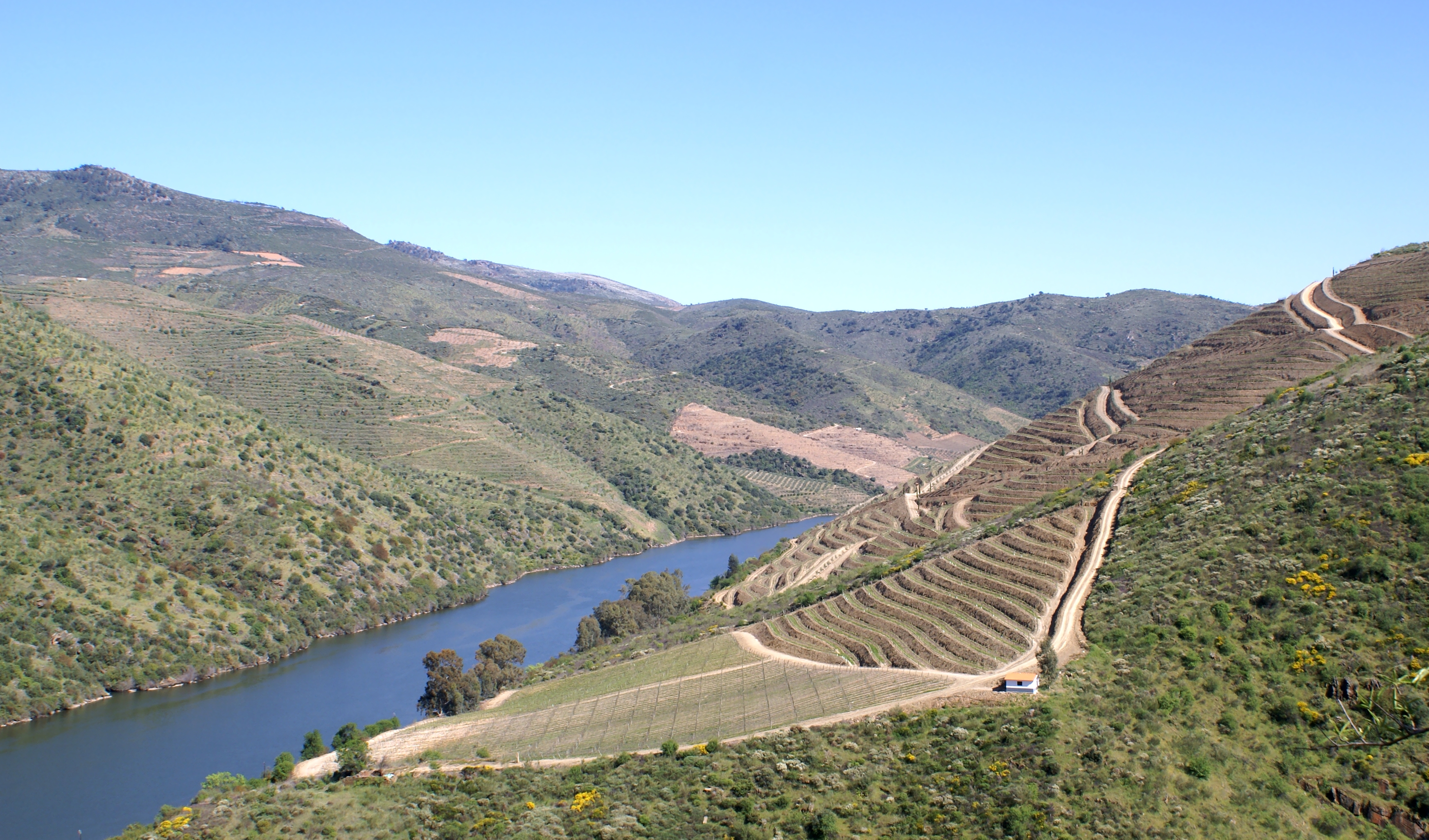 Without the railway, wine production at Meão was certainly not viable. While pipes of port could be brought to Oporto from the central Douro by boat, the Douro Superior subregion lays several narrow river gorges upstream. Dona Adelaide had a lot of foresight, however, and she realised the district’s potential before everybody else. Here the landscape is less abrupt than in the Cima Corgo (central Douro), and you can have several hectares of vineyard that are nearly flat (unthinkable farther downstream). That means less manual work and a possibility of mechanisation, therefore lower production costs. As it’s difficult to satisfy growing demand for Douro wines, the Douro Superior provides a solution. All major producers are investing here now, including Crasto, Vallado (my next visit), Rosa, Duorum, a mediatic new project, and several others.