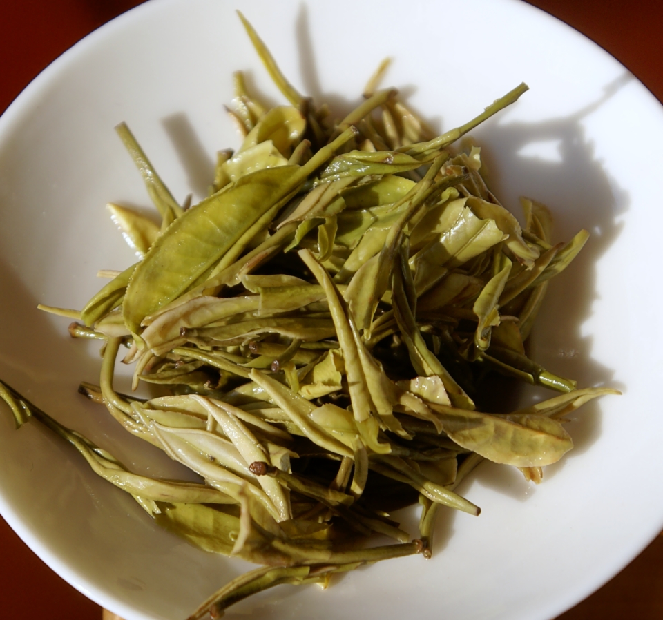 Li Yang Bai Cha as per its name has small pale whitish-green leaves reminiscent of the famous Anji Baicha. Taste-wise it’s also similar (and Guapian also came to mind) with a very fruity first infusion dominated by sweet melon. But there’s also a herby twist and a more usual green beans bottom note. Unfortunately it’s quite simple and bland from the second infusion onwards (something I find characteristic of these farmers’ teas; they’re never very patient).